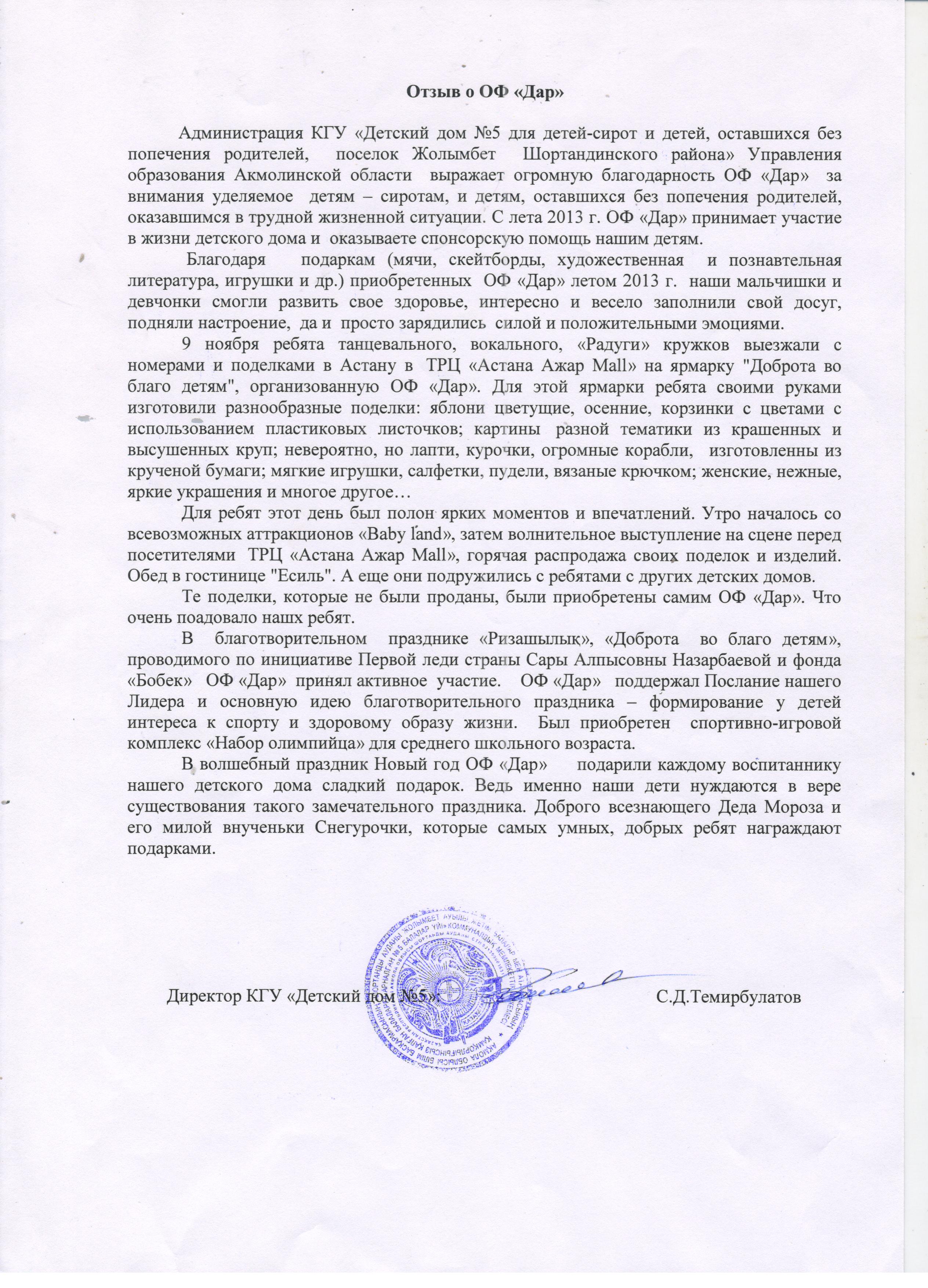 Благотворительный Общественный фонд "Дар" был организован в феврале 2013 г.